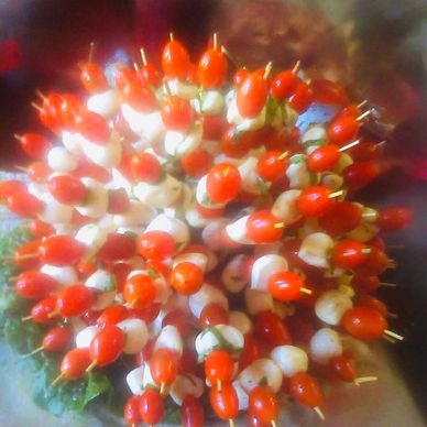 Each skewer is layered with sweet grape tomatoes, fresh mozzarella pearls, and fragrant basil leaves, arranged into a vibrant red, white, and green ball. This elegant display is easy to serve, perfectly bite-sized, and guaranteed to impress your guests.